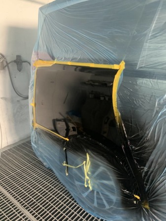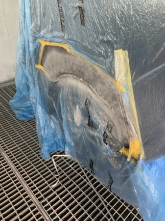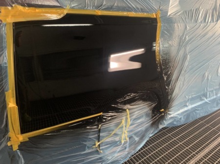 さらに塗料がかかってはまずい部分を専用のシートでマスキングをしてから塗装に入ります。