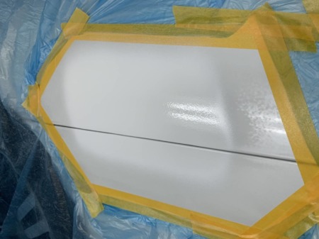 ▼塗装面をシリコンオフで脱脂し、清掃をします。