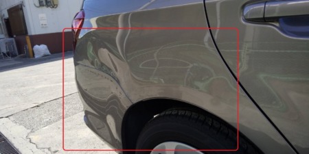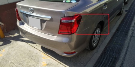 右クォーターパネルからリヤバンパーにかけてへこみとキズが出来てしまったそうです。