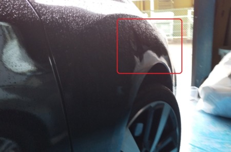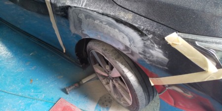 ▼シリコンオフで脱脂し、次に凹凸を埋めるためのパテを塗っていきます。