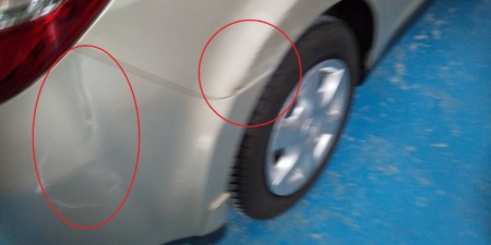 ▼ クオーターパネルとバンパーに擦り傷がついてしまっているようです。