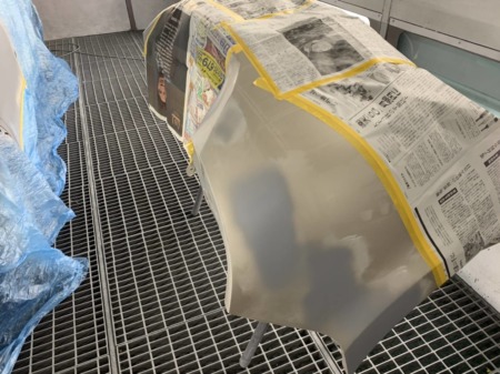 塗装面以外をマスキングで覆いをして、サフェーサを吹きます。