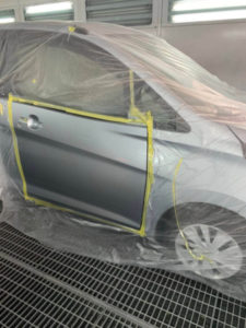 塗装するフロントドア以外はしっかりとマスキングし、塗料が入り込むのを防ぎます。