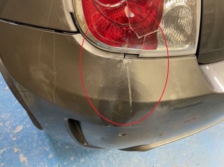 ▼ リアバンパーが衝撃で結構大きなダメージを受けてしまっています。